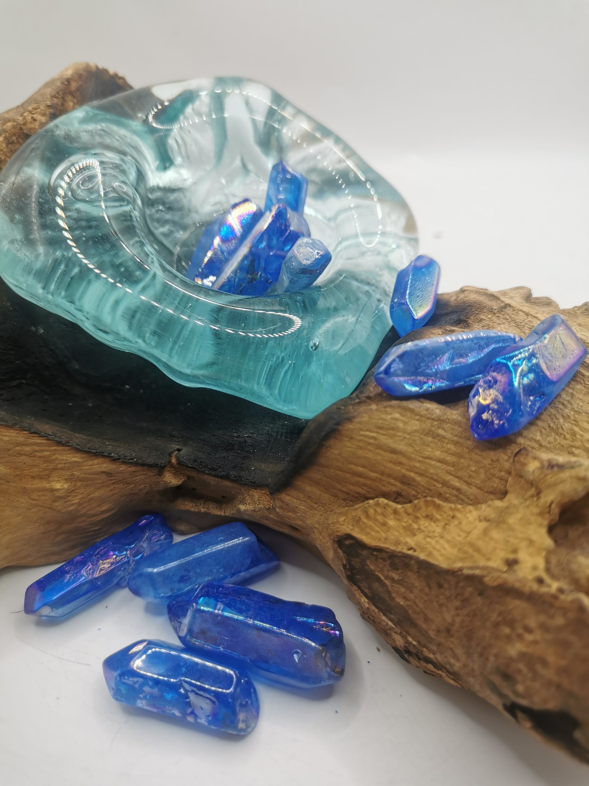 Blue Aura Tips are believed to enhance clarity and communication, promoting a calm and balanced energy field. Known for their soothing blue hue, they are thought to support emotional healing and spiritual insight, helping to align and cleanse the aura. Ideal for those seeking to deepen their metaphysical practice, these tips offer a refined way to invite tranquillity and clarity into your personal energy space.