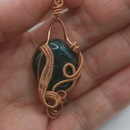 Copper Wire Wrapped Moss Agate Crystal Pendant