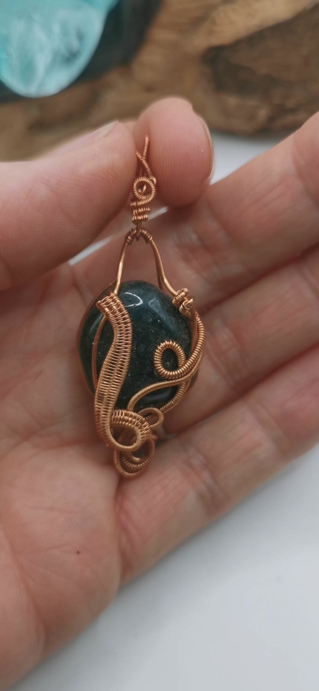 🍃 Copper Wire-Wrapped Moss Agate Pendant 🍃